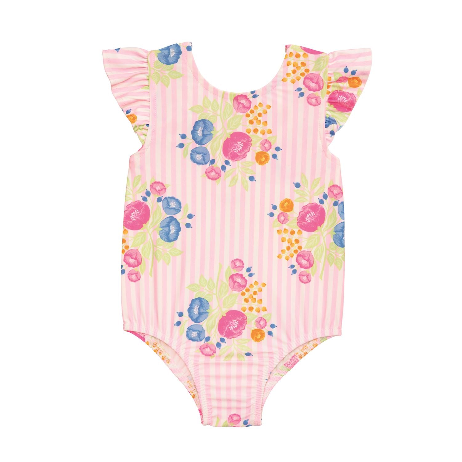 FLORAL PINK STRIPE ONE-PIECE SWIMSUIT