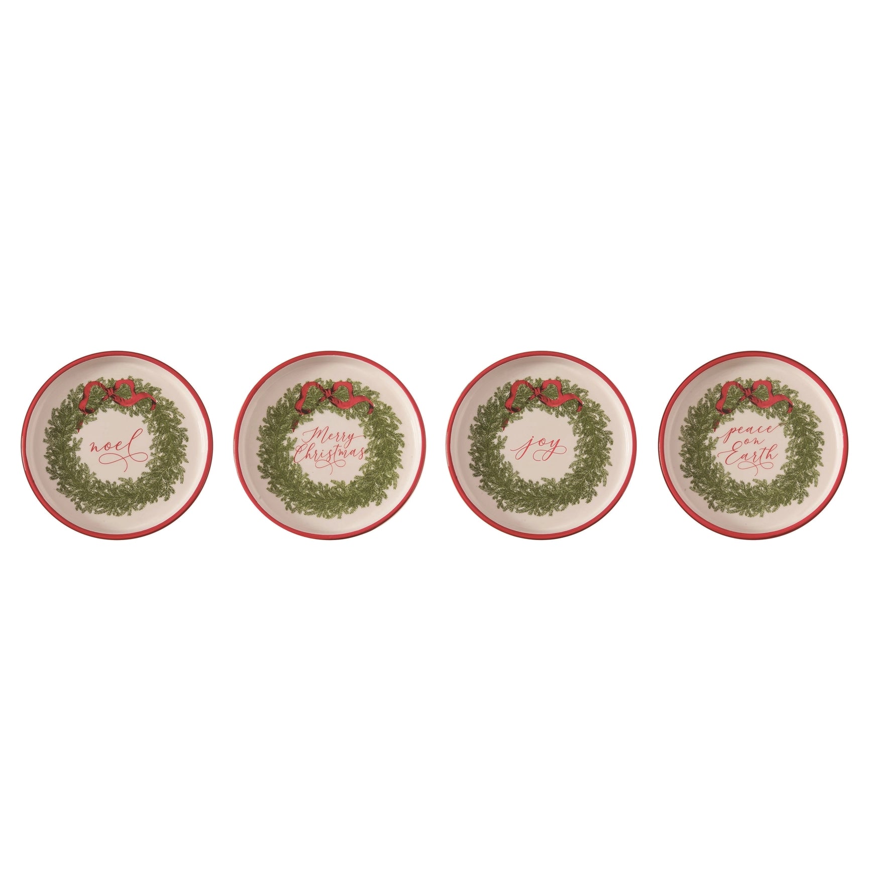 Bring festive charm to your holiday table with thisĀ Christmas dessert plates featuring classic green wreaths, red bows, and cheerful holiday sayings: Noel, Merry Christmas, Joy, and Peace on Earth. Perfect for serving cookies, appetizers, or holiday treats, these plates instantly add warmth and style to your seasonal gatherings.