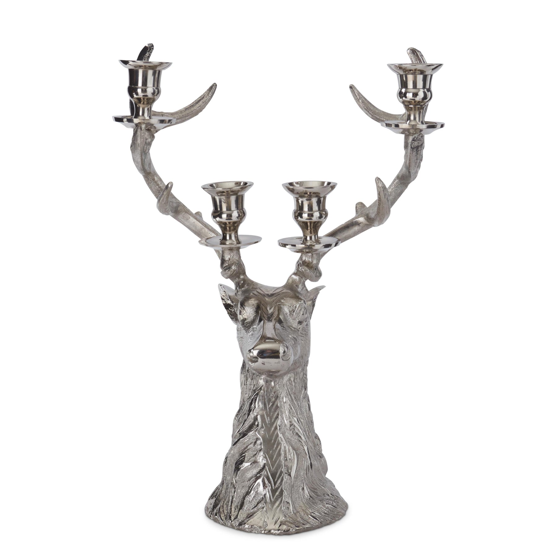 SILVER DEER BUST 4 TAPER CANDELABRA
