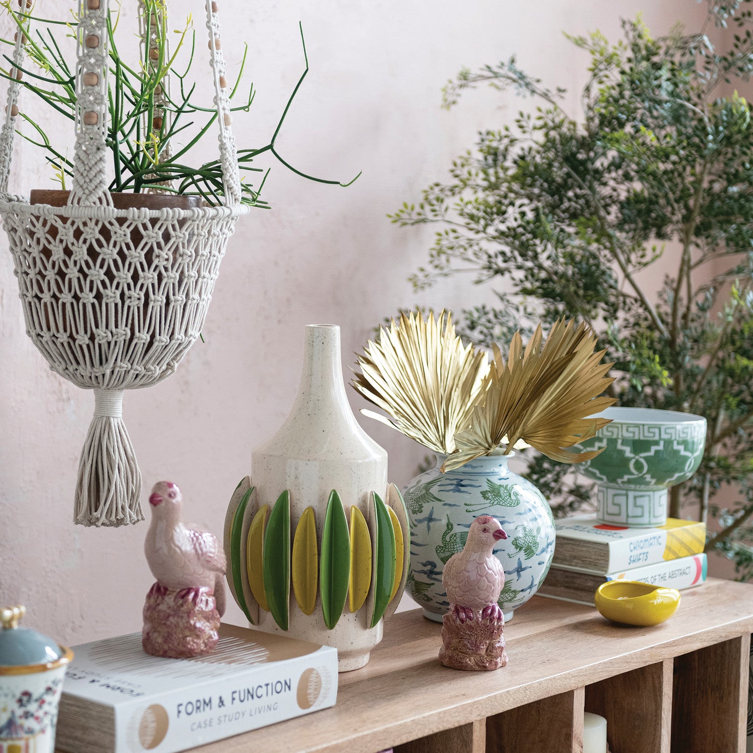 A statement piece worthy of your best vignette — this hand-painted green and white footed bowl brings sculptural elegance and chinoiserie charm in equal measure. The geometric pattern is rendered in rich green against a crisp white ground, and the footed silhouette gives it height and presence on a console, dining table, or entry. Because each piece is hand-painted, every bowl varies slightly — making yours genuinely one of a kind.