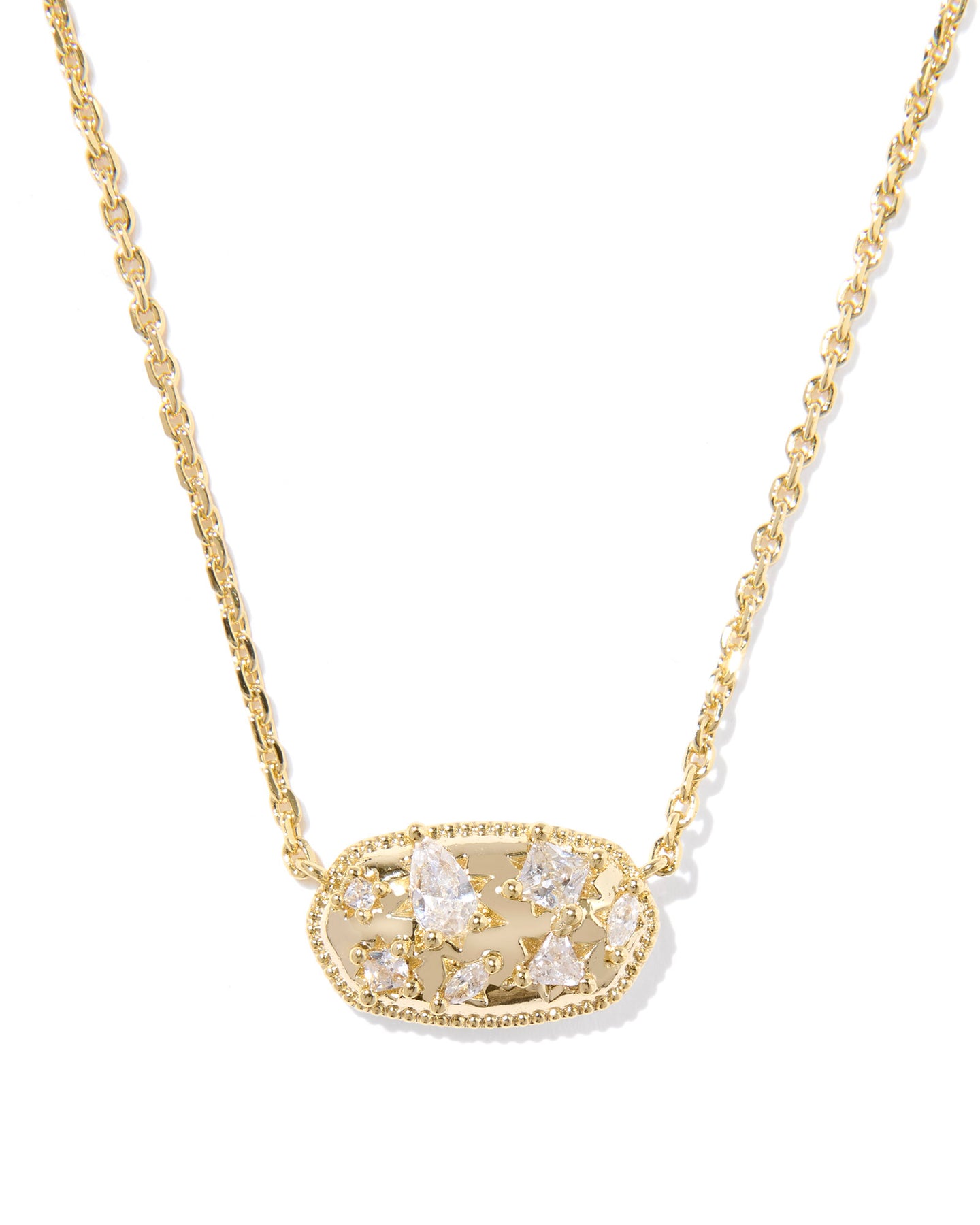HOLLAND CRYSTAL SHORT PENDANT NECKLACE, GOLD WHITE CZ