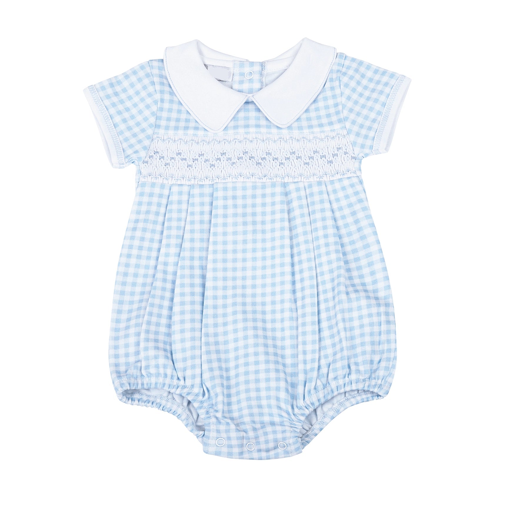 MINI CHECKS BLUE SMOCKED BUBBLE