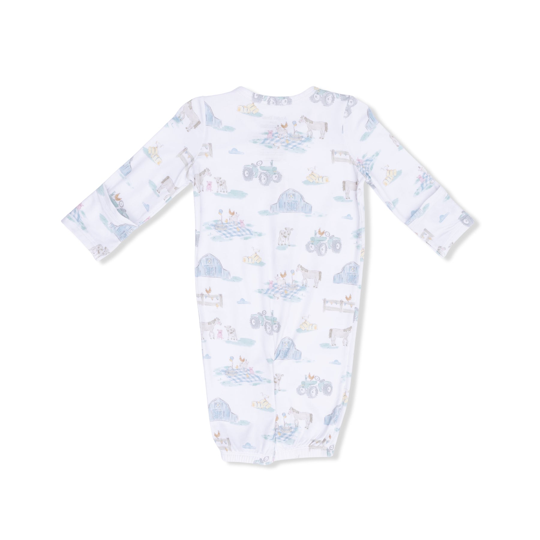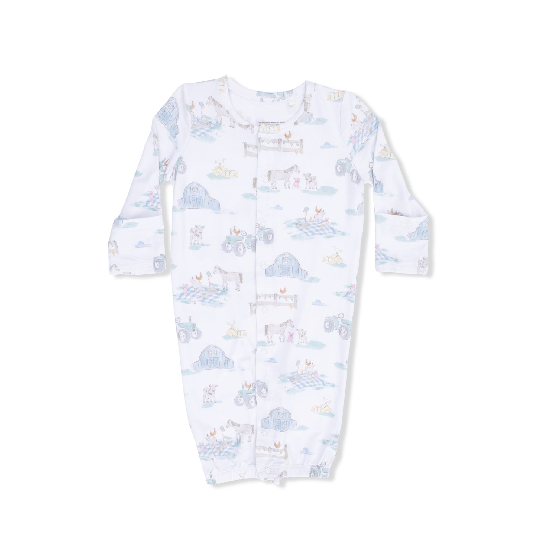 Keep your baby comfy and stylish with this Convertible Gown in a classic farm print! Made with silky-soft viscose fabric, this gown is perfect for cozy naps, easy diaper changes, and snuggles. The unique design offers bot h the comfort of a gown and the practicality of a wearable piece, making it a must-have for every newborn's wardrobe.
