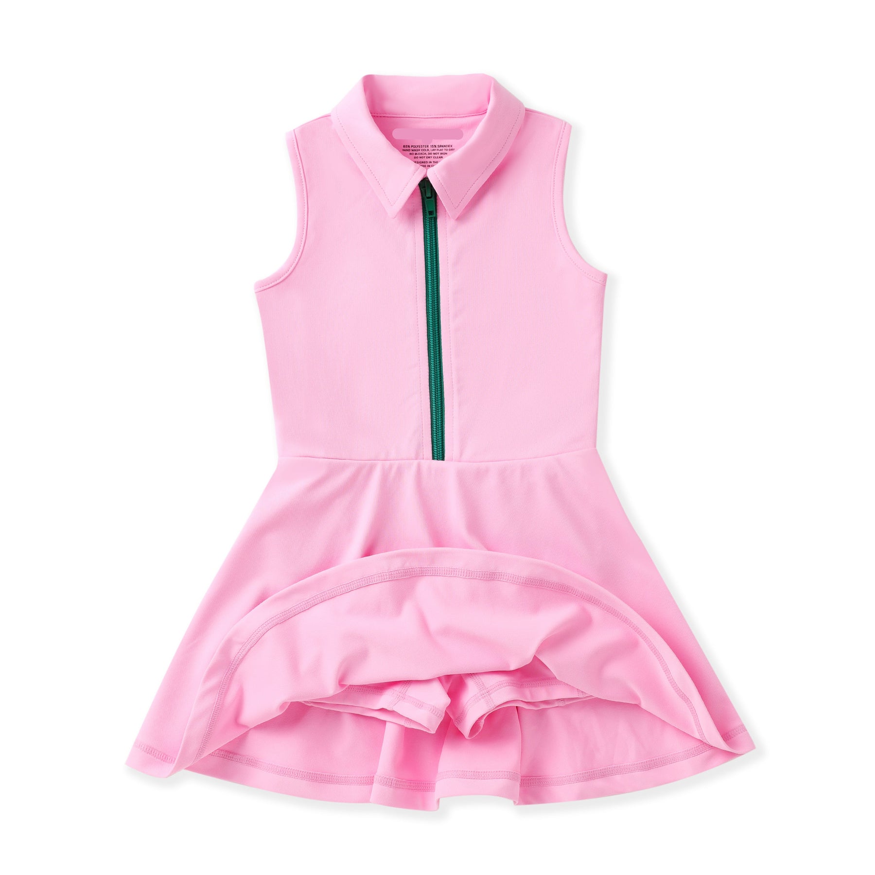Designed with a sleeveless collared neckline and a half-zip front in a contrasting green, this dress offers a preppy country club aesthetic with modern functionality. Crafted from lightweight, breathable performance fabric, it’s perfect for warm-weather days filled with movement and fun.