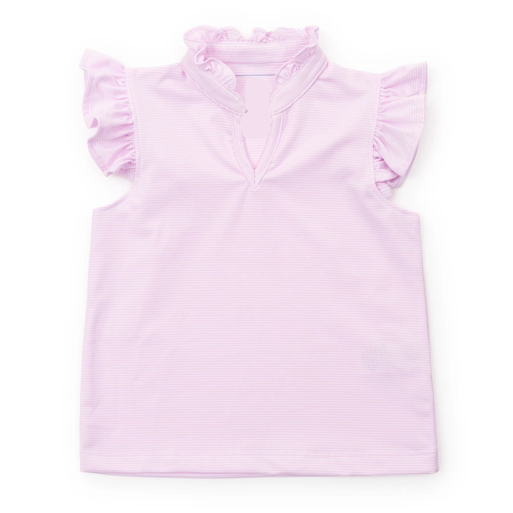 Designed for active girls who refuse to compromise on style, the Pink & White Stripes Ellie Performance Top combines athletic functionality with playful details. Sleeveless construction and moisture-wicking fabric keep her cool during sports, practice, and weekend adventures, while charming ruffles at the collar and sleeves add a touch of personality. Perfect for game day, school events, or casual outings—this versatile top transitions seamlessly from the field to everyday wear. Built to move with her, it's the go-to piece for young girls who want performance and flair.