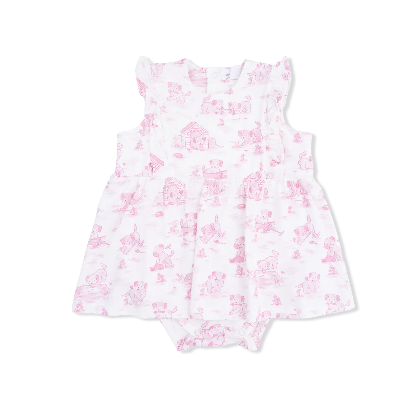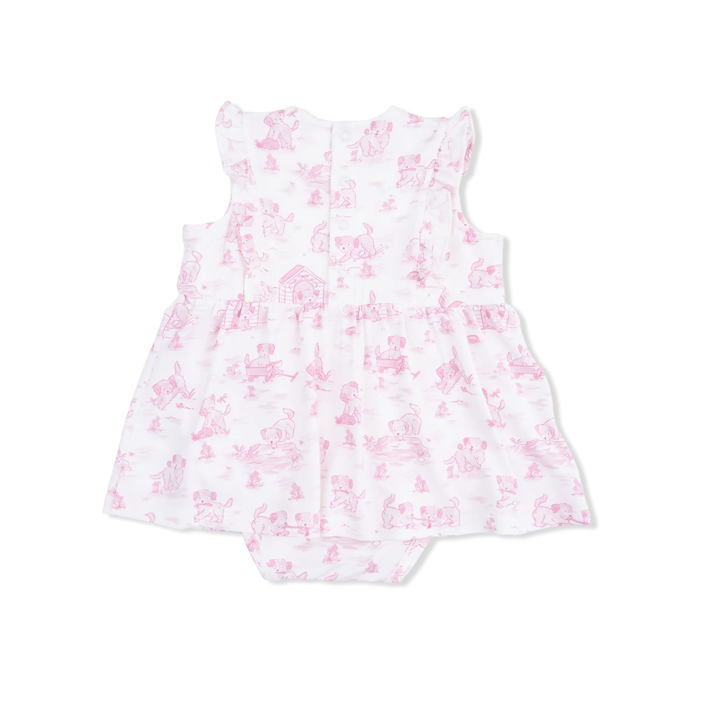 PUPPY TOILE PINK RUFFLE BODYSUIT DRESS