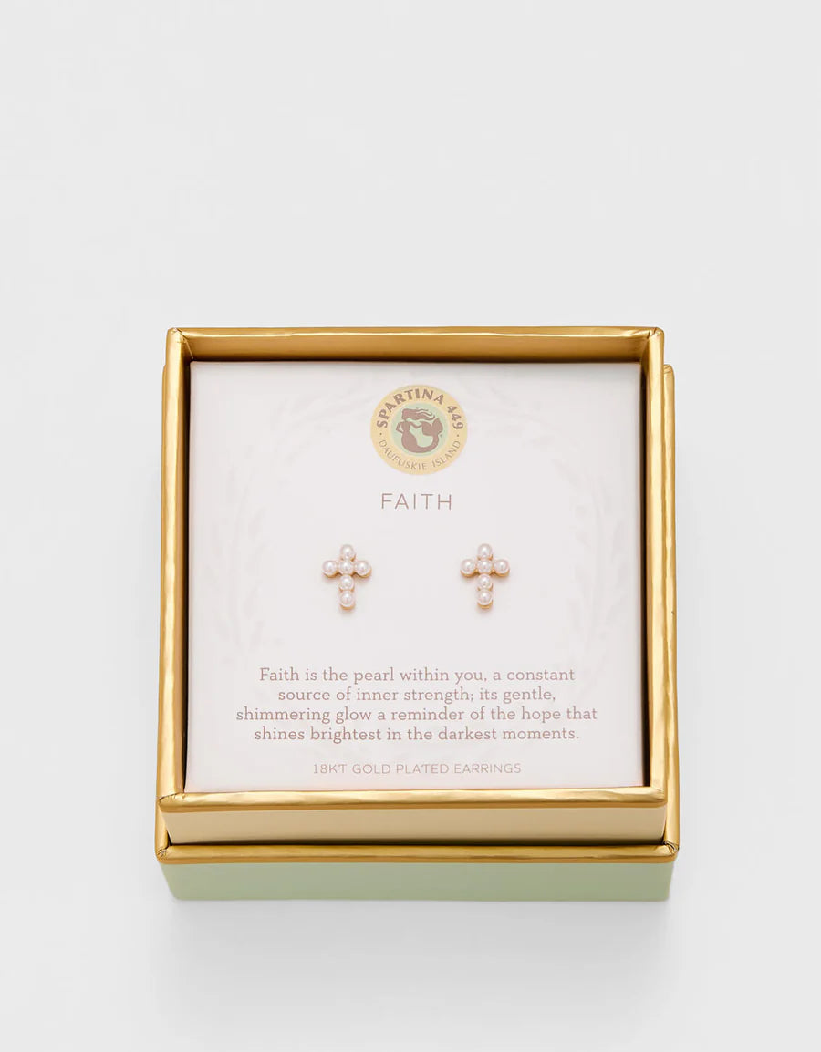 Wear our Faith Earrings as a reminder to always have hope. Featuring a faux pearl cross studs, these earrings come packaged inside a beautiful box with the message: "Faith is the pearl within you, a constant source of inner strength; its gentle, shimmering glow a reminder of the hope that shines brightest in the darkest moments.''