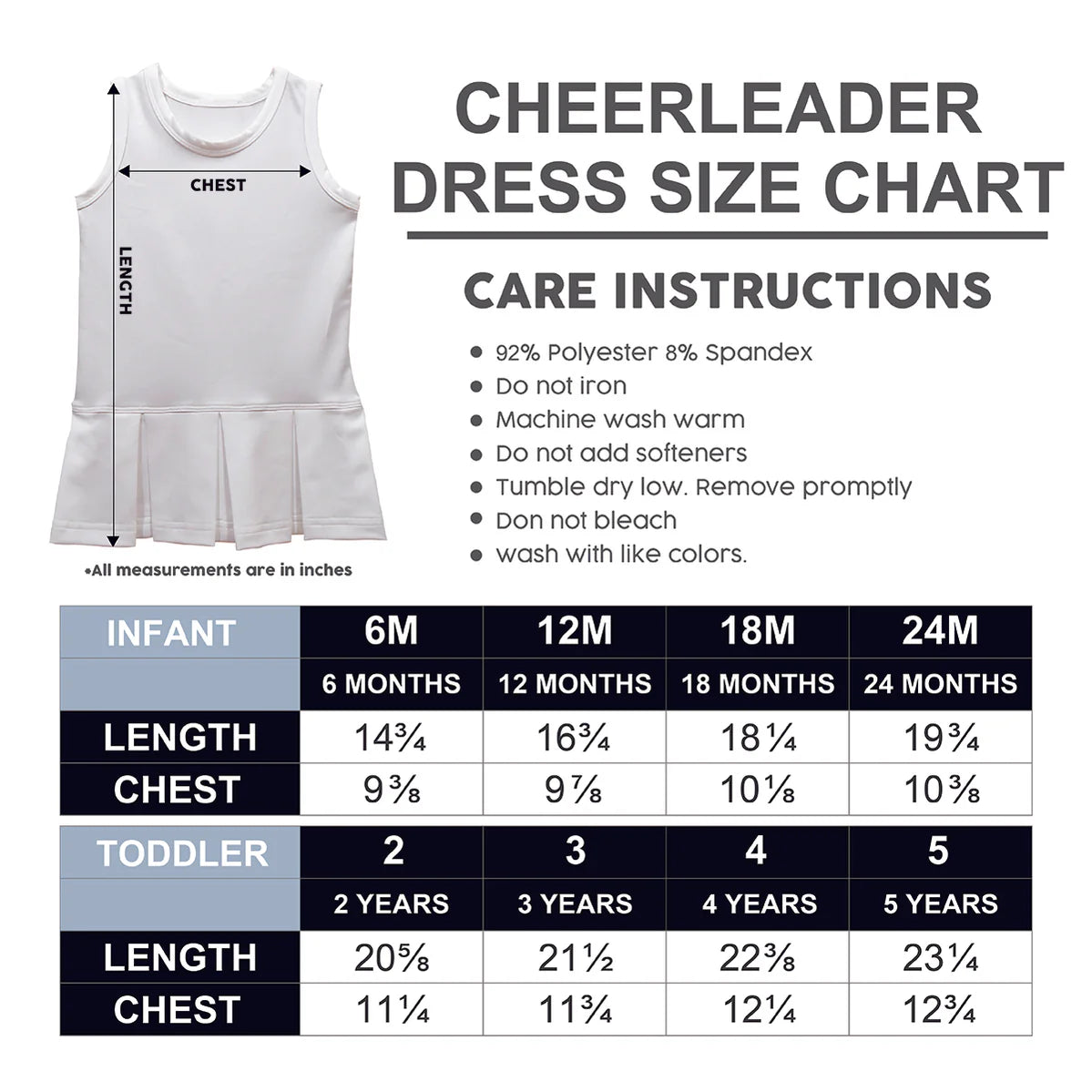 - This timeless design cheerleader dress made with top-quality long-lasting four-way stretch polyester spandex blend, sublimated moisture wicking soft knit fabric that holds its colors forever. Performance fabric that's comfy, strong, and breathable, UPF50.